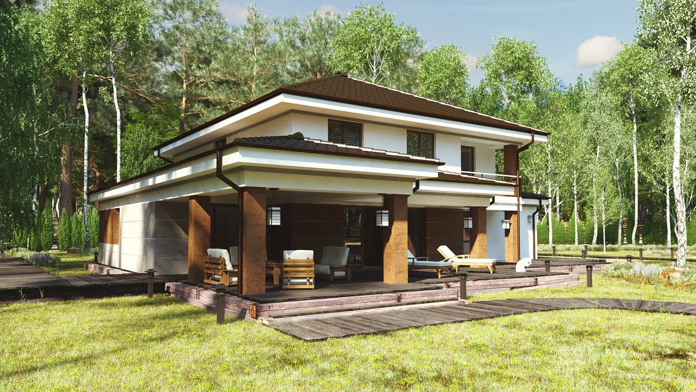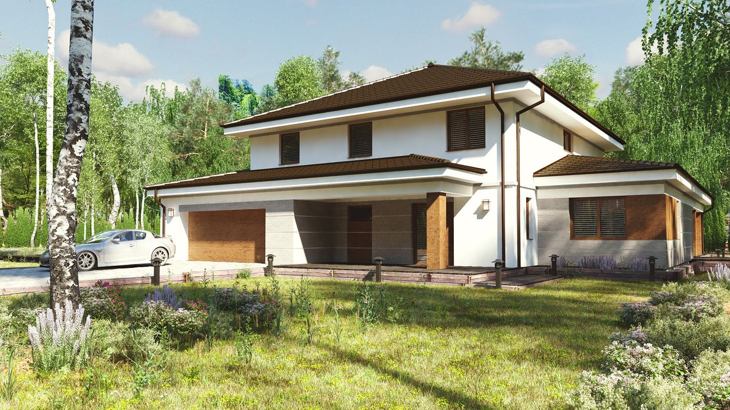 Модела uA32 е удобен, готов дизайн на къща за най-взискателните клиенти. Използваната му площ е 241 м2. Този проект се характеризира с интересна форма с четвъртит покрив и голяма покрита тераса. Този проект включва практичен гараж с две клетки и котелно помещение. Долу има голяма всекидневна с трапезария, която дава усещане за простор. Полуотворена кухня с килер, баня и допълнителна стая с гардероб. Първият етаж се състои от три удобни спални, включително основната с гардеробна, перално помещение и баня. uA32 е дизайн на семейна къща, който перфектно ще се впише както в градската среда, така и в природния пейзаж, например в гората.